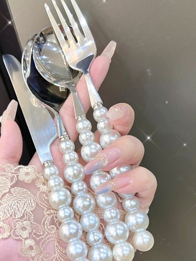 掀开它的遮布里面是一个,就是一个很普通的叉子,但是这个叉子的尾端是闪耀着许多的珍珠