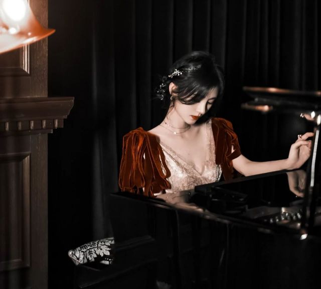 她从容的弹着钢琴