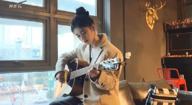 秋棂再次起身拿了把吉他开始弹奏