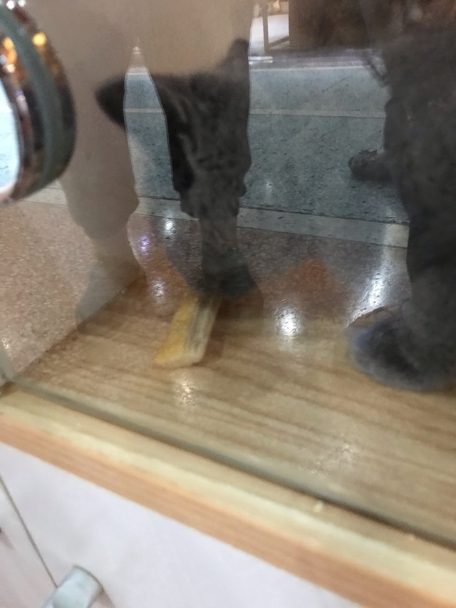 作者拍的不清,但明显是有人喂了猫蟹肉棒