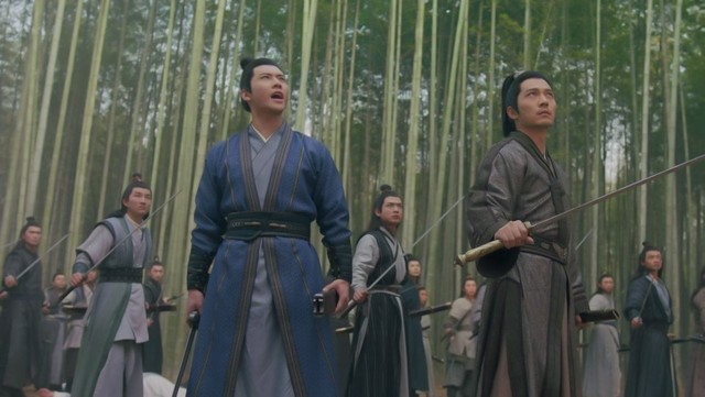 透过缝隙,还能依稀看清杨奕绷紧的身躯,束发垂于腰间,修长的指间搭在剑鞘。