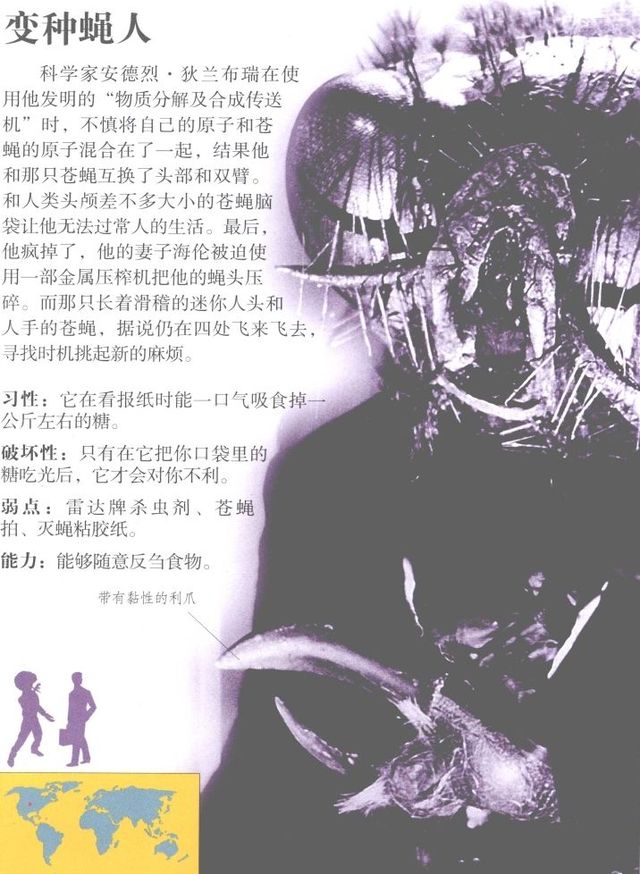 这只半人半蝇,看上去就像是沼泽怪物或复仇毒魔的变形人魔是一场科学实验事故的产物。