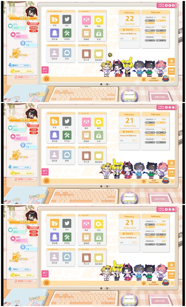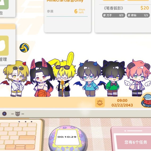 作者然后再给大家看一下,我老早之前就玩的一个游戏,更新之后发现,桌面上可以放好几个小人偶了,我就把箱子也捏了进去()