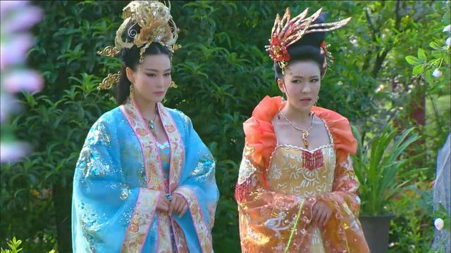 妲己和青青走在御花园里