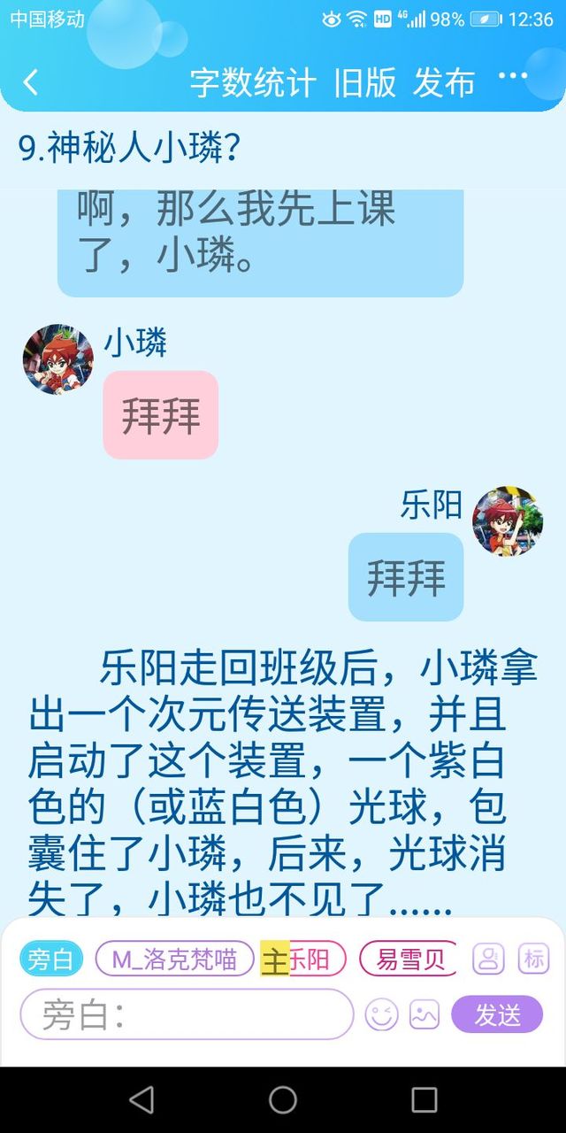 乐阳哈哈哈,雪贝,我刚才遇见了小璘,他说他是跟老师请假了,现在放学了,我们去看看他吧。