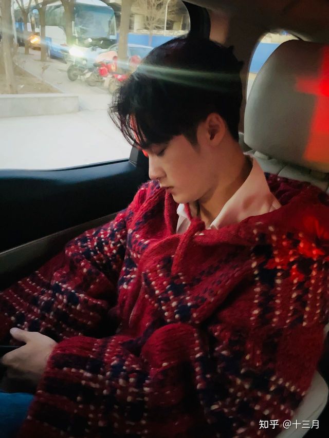 在车上,檀健次每次都会睡着,他的脸总是靠着窗户,很乖。