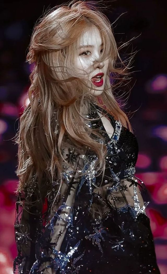 温酒辞,今天画的妆非常的x感,大红唇,再加上金色长发,显得她整个人美得不可方物,x感至极