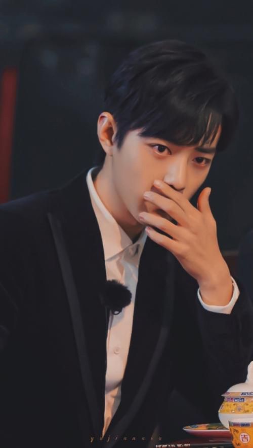 肖言今天穿了一身黑色西装,打着领带,脸上带着一副金丝眼镜,垂下一缕金线来,显得更加魅惑帅气。