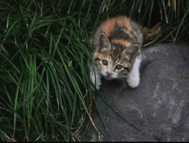然而,想象中的危险却没有来临,我冲到了灌木丛前,和一只大吃一惊的猫咪对视了一眼后,它仓皇逃开了,就像这样: