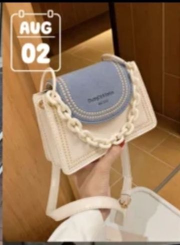 手里紧张的攥着白色斜挎包的带子
