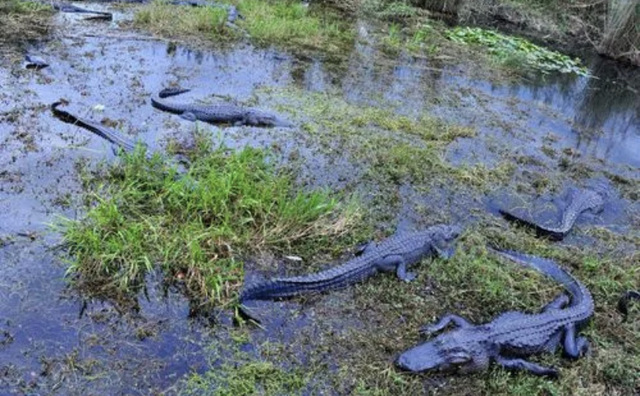 又把肉切成五段,每个人背了一段鳄鱼肉。