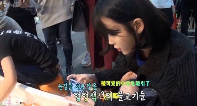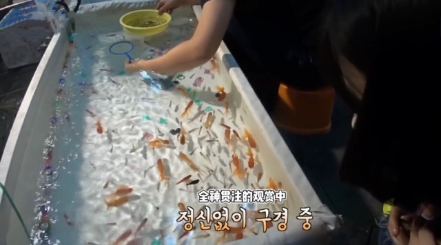 秦淼淼拉着边伯贤跑去给其他叔叔付了钱后又开始在街上到处乱晃悠,随后停留在了一旁的小鱼店门口