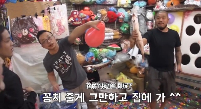 见秦淼淼有些不开心,摊主大叔拿了个秋刀鱼过来递给秦淼淼“给你个秋刀鱼,别玩了吧”
