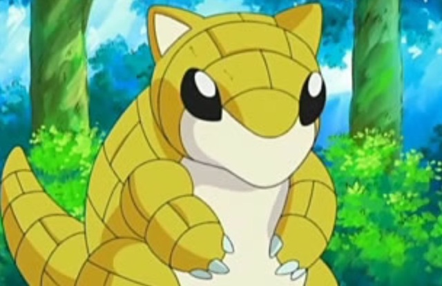 “穿山鼠,鼠神奇宝贝。会在地上挖洞居住,如果危险临近,就会蜷成一团来保护自己。”