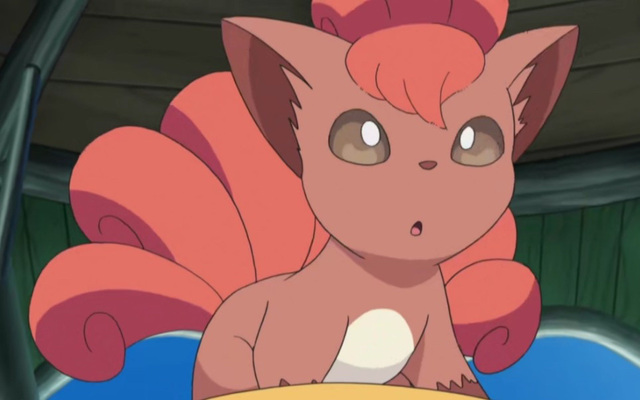 “六尾,狐狸神奇宝贝。美丽的六根尾巴在进化的前一刻,会带有猛烈燃烧的热度。”