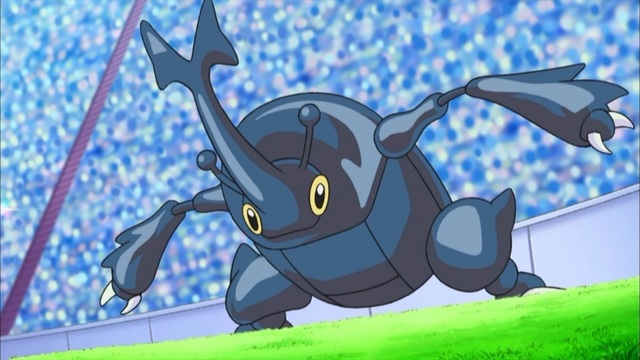 随着立夏抛出精灵球,白光闪过,一只赫拉克罗斯出现在场地上。