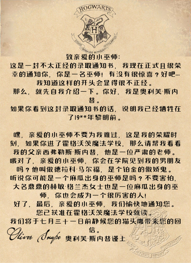 奥利芙·斯内普“拜托, 小龙,别生气了,我都不生气。”