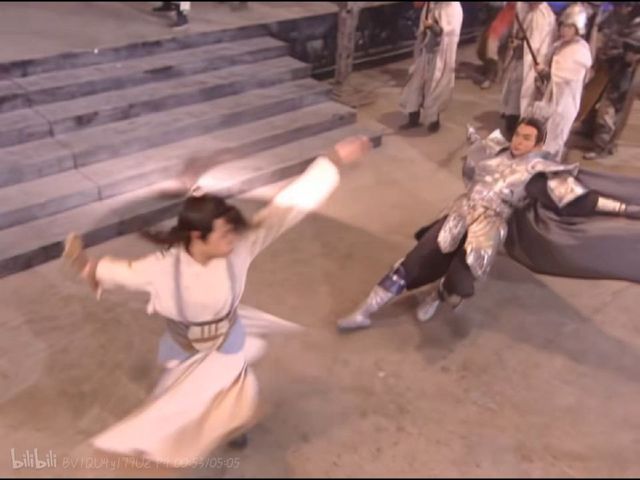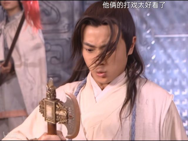 沉香发现杨戬在自己的后面,于是又朝杨戬劈去。可是又差一点擦过了杨戬的身子