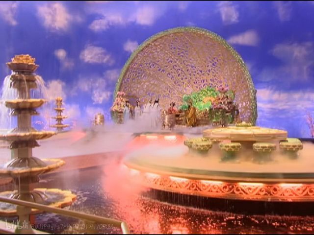 玉帝说完之后,喝了点酒。发现杯子空了,值官要倒的时候,若芸对玉帝说