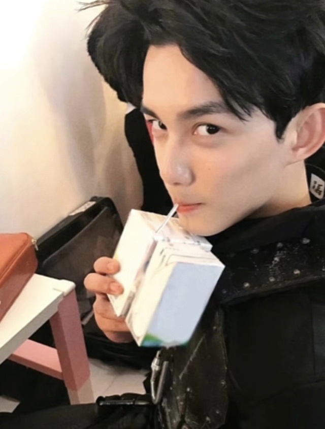 吴磊插上吸管,吸了一口牛奶。