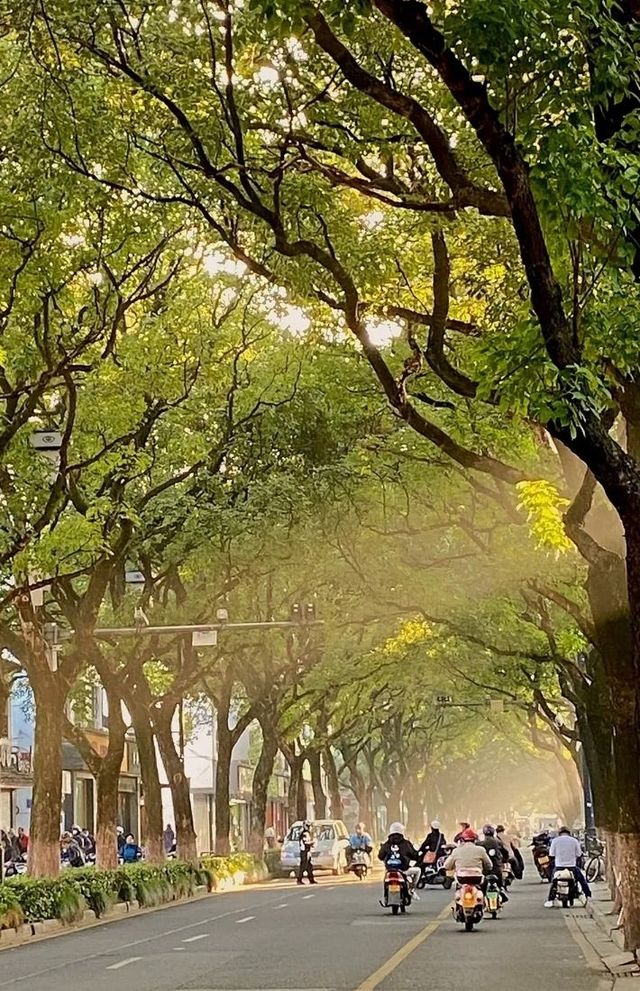清晨,街道上是一片潮呼呼的露水气味,树影子在月光的照耀下渐渐变淡,星星也渐渐少了。