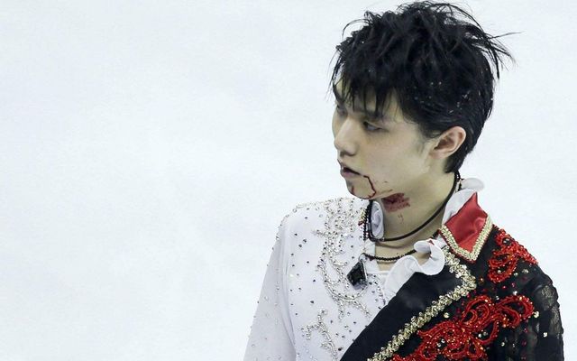 相撞受伤后,羽生结弦的体能和意识已经无法支撑比赛,他咬牙勉强坚持,完全靠勇气在滑行、在跳跃、在比赛。