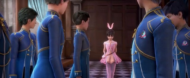 此时,他们身后走进来一个全身粉色的少女,就是小舞。