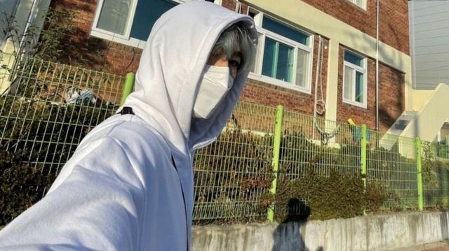 朴雪灿害羞地捂着脸。