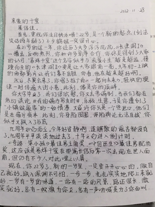 作者这应该是易烊千玺继那篇长信后第一次出现在世人面前。