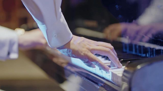 陈洺坐在鹿华年的身边与鹿华年一起弹起了钢琴,鹿华年把视线收回继续看着钢琴上而陈洺的视线一直停留在鹿华年的身上。