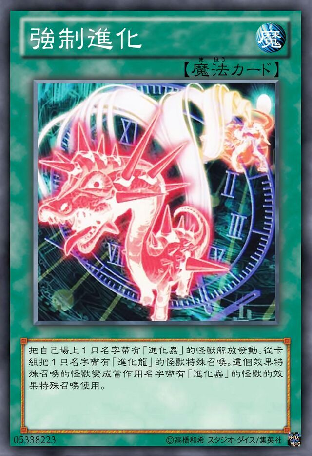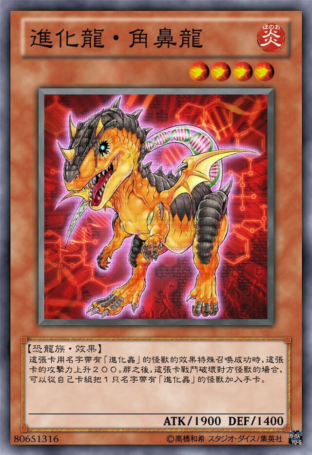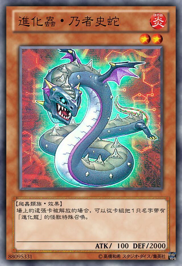 恐龙龙崎连接着再从手牌发动【强制进化】我献祭【乃者史蛇】从卡组里面将【进化龙·角鼻龙】特殊召唤,用这张卡召唤出来的进化龙当作用进化虫的效果召唤