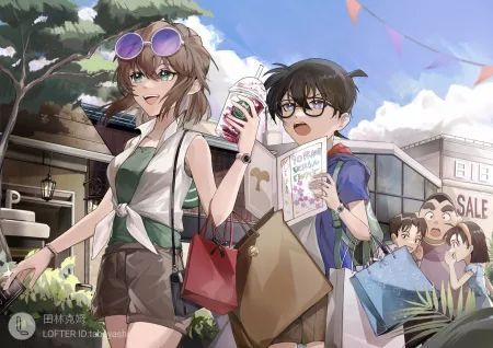 黑羽快斗今天和名侦探一起出去玩,真开心。