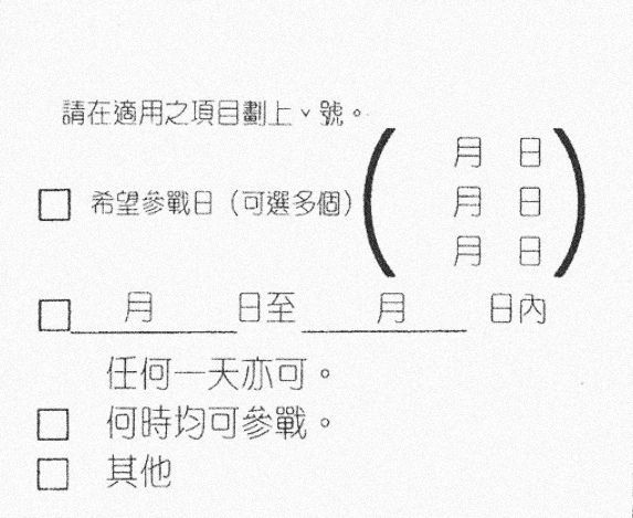 小杰回看他一眼,拿起笔毫不犹豫地在“任何一天都可随时参战”旁打了✓。