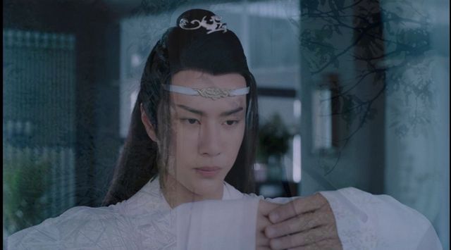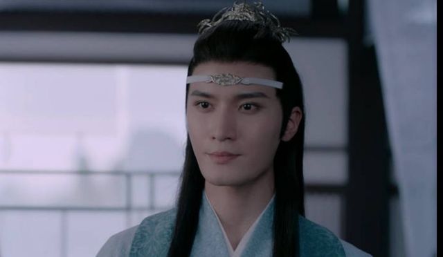 蓝忘机束着一条云纹抹额,皮肤白皙,如琢如磨,俊极雅极。