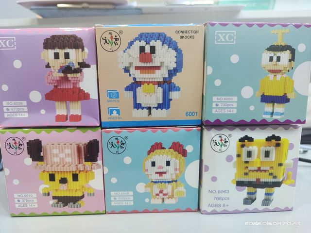 今天晚上我比较空,我来这边有一个小集市,买了自己从小喜欢的积木玩具,十块钱一个,买五送一,于是乎,买了自己喜欢的蓝胖子系列,摊位上派大星没货了,就拿了一个海绵宝宝,送的挑了一个乔巴。