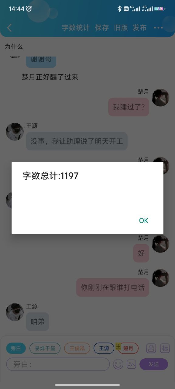 王源没事,我让助理说了明天开工