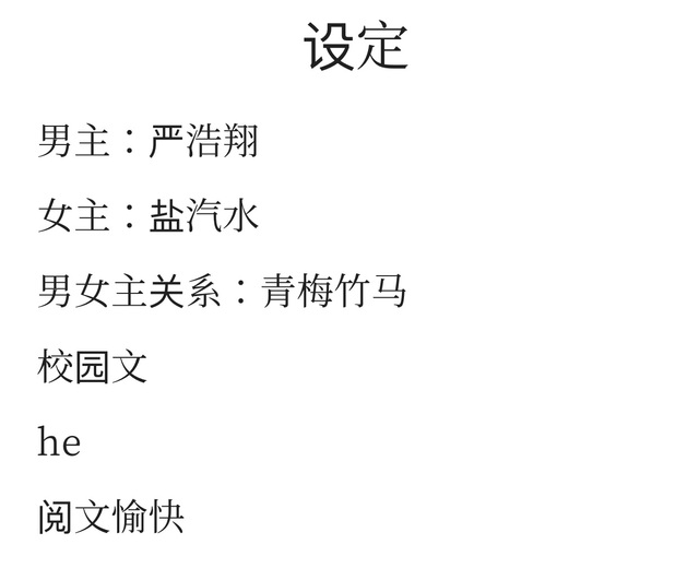 前情提要: 盐汽水和严浩翔是青梅竹马,盐汽水是个学渣长相还不错但家境很好,而严浩翔是学霸兼校草兼校霸并且家境也很好。他们两家有生意上的往来,并且父母关系还不错,所以总是能看到他们两个在一起。但谁又知道他们两个蓄谋已久了呢?