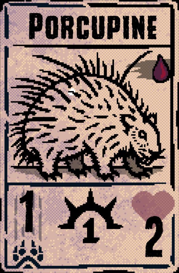 突然间,草丛又有了动静。几乎是一瞬间,一只豪猪便猪突猛进般冲了出来,别看豪猪只是一个1/2的1费造物,但是它的印记可是尖刺铠甲,当拥有这个印记的造物被攻击时,对对方反弹1点伤害。