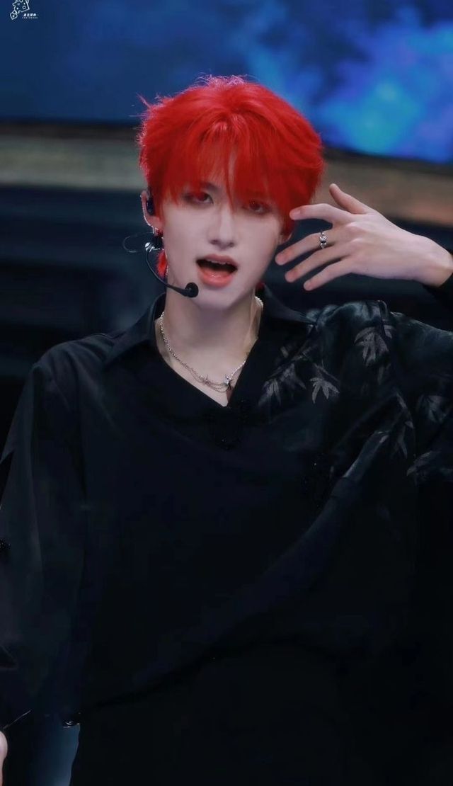 红发衬得朱志鑫的皮肤更加白皙,五官深邃立体,气质清冷高傲