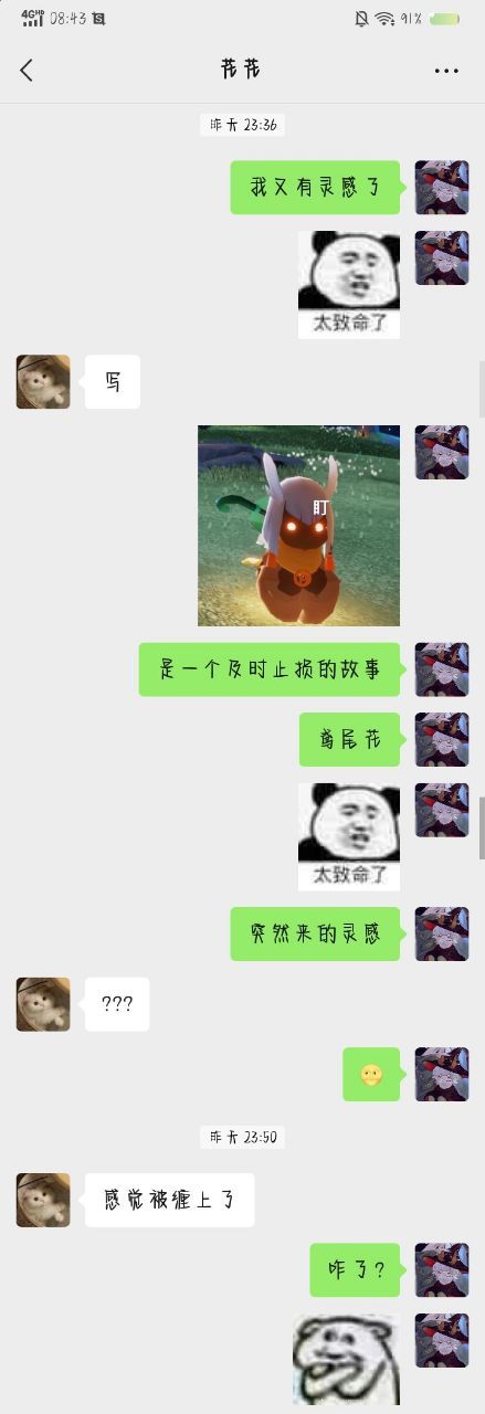 其实刚开始我不怎么喜欢她这个名字。感觉有点土。(然后我想到了花城)就花花地叫她了,顺口。