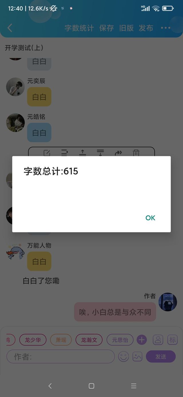 元奕辰诶,思怡你们今天是不是要开学测试呀?