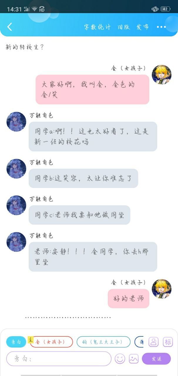 金(女孩子)我叫金,是新来的转校生
