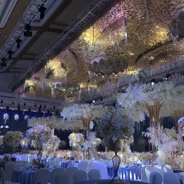于此同时,婚礼进行曲的伴奏响起,灯光也打在了新娘和新郎的身上。
