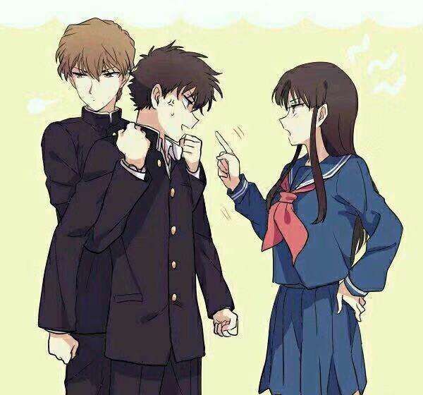 工藤新一三个头发是黑的,一个头发是茶色