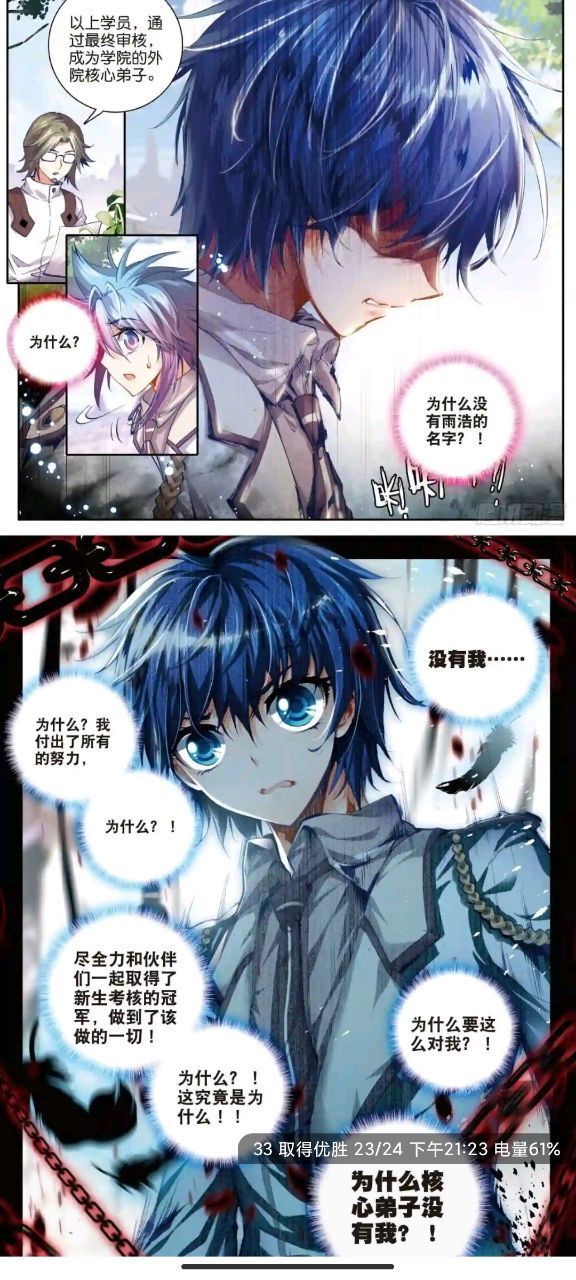 插一句嘴哈,个人认为这段剧情不是很好,显得雨浩心境太薄弱,导致我有点不喜,他的魂力等级不够是客观无法改变的,而核心弟子最低都有25级,学校也有自己的想法,他的武魂确实不怎么突出,导致学校没有认识到他对团队的重要性