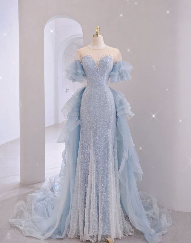 姚姒突然看到一条蓝色鱼尾裙,后面还带着裙摆,但是身材不好的人根本驾驭不起来