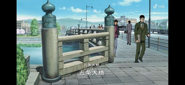 服部平次在京都的五条大桥上 身形硕大的弁庆举起长刀 朝牛若丸砍去
