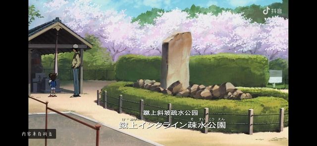 服部平次在樱花树下捡到了那颗水晶珠