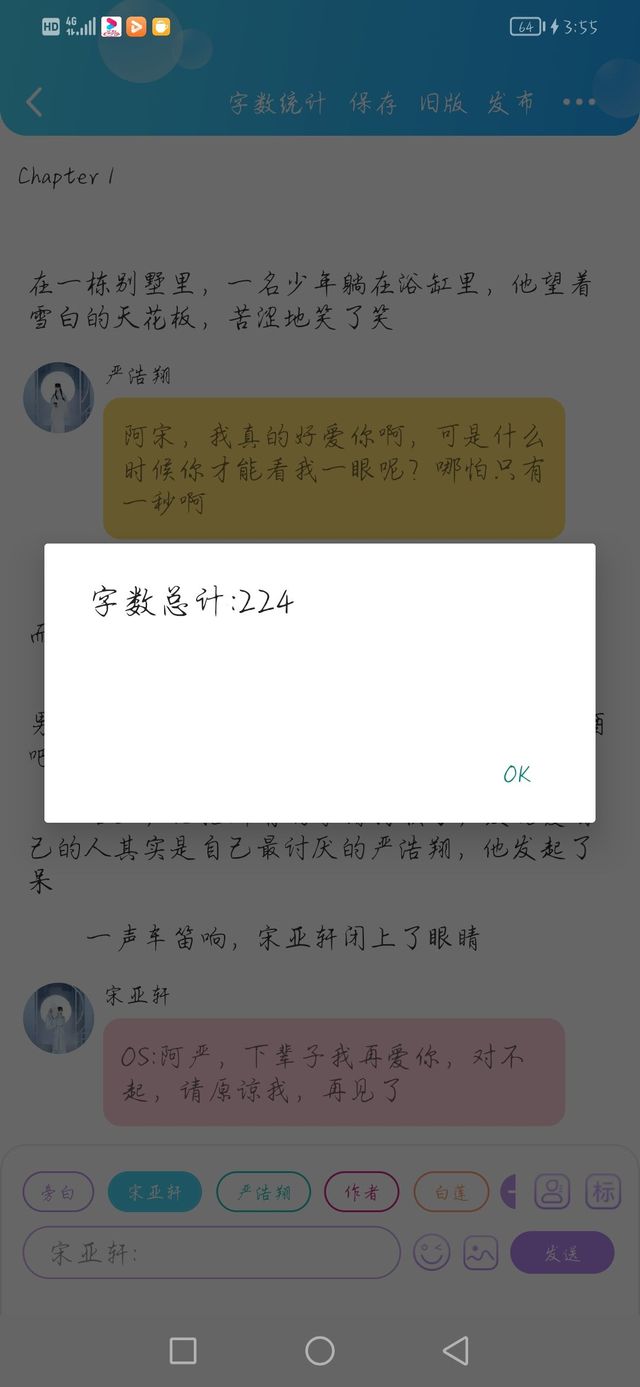 突然间,他发现白莲也在,她正在和一个男生kiss,他发了一个微信给白莲,就离开了酒吧