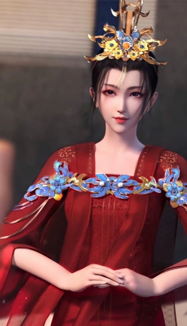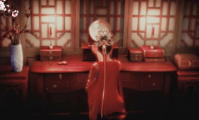 李寒衣在房间里梳妆,红色的衣服衬得她更加风华绝代
